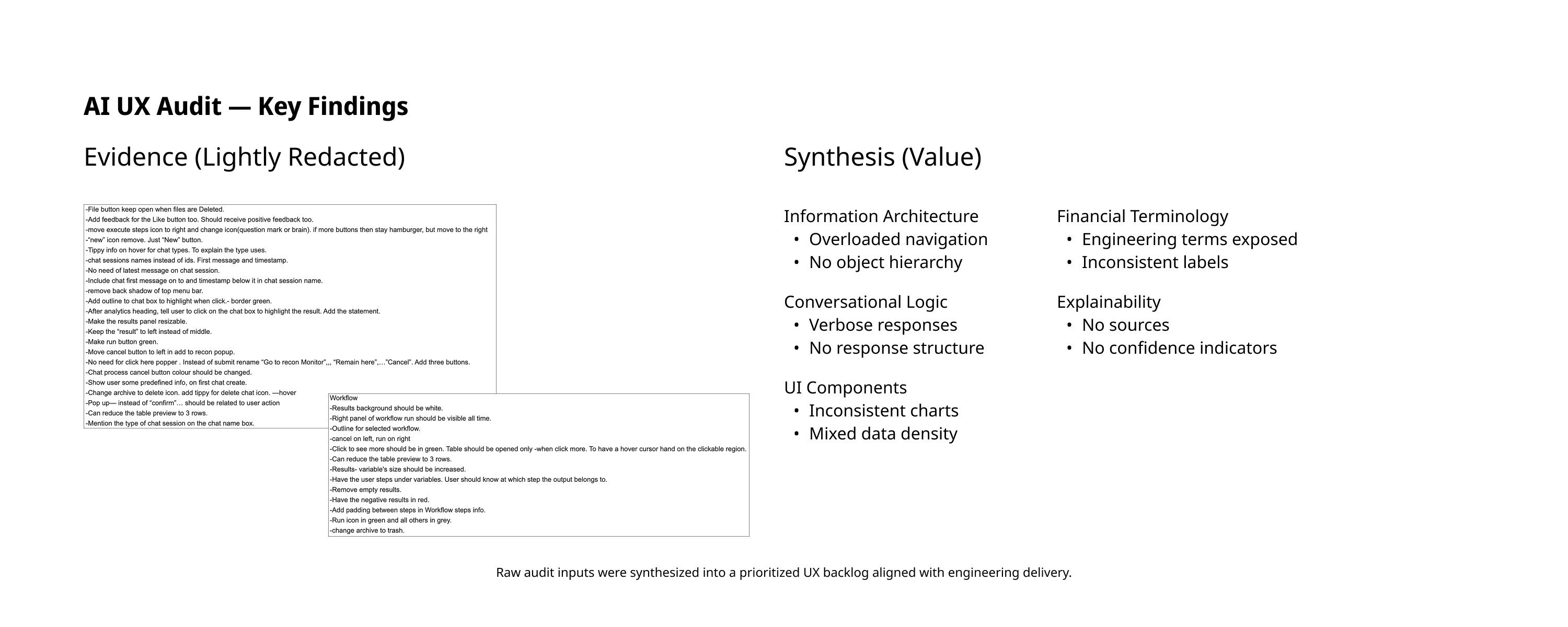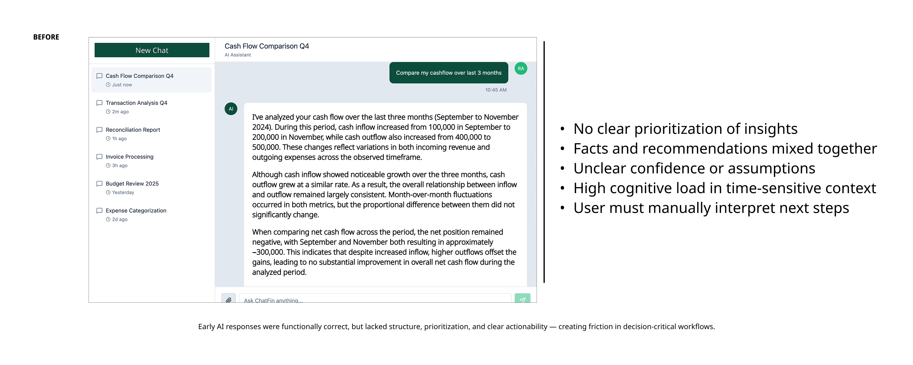 • UX Debt: Fragmented workflows led to "hallucination anxiety" during data queries.